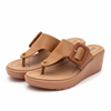 Artesana PASOS - Sandalia Tipo Thong Plataforma: Sintético Cuero Graneado con Tira en T, Hebilla Tejida Artesanal y Plantilla Anatómica